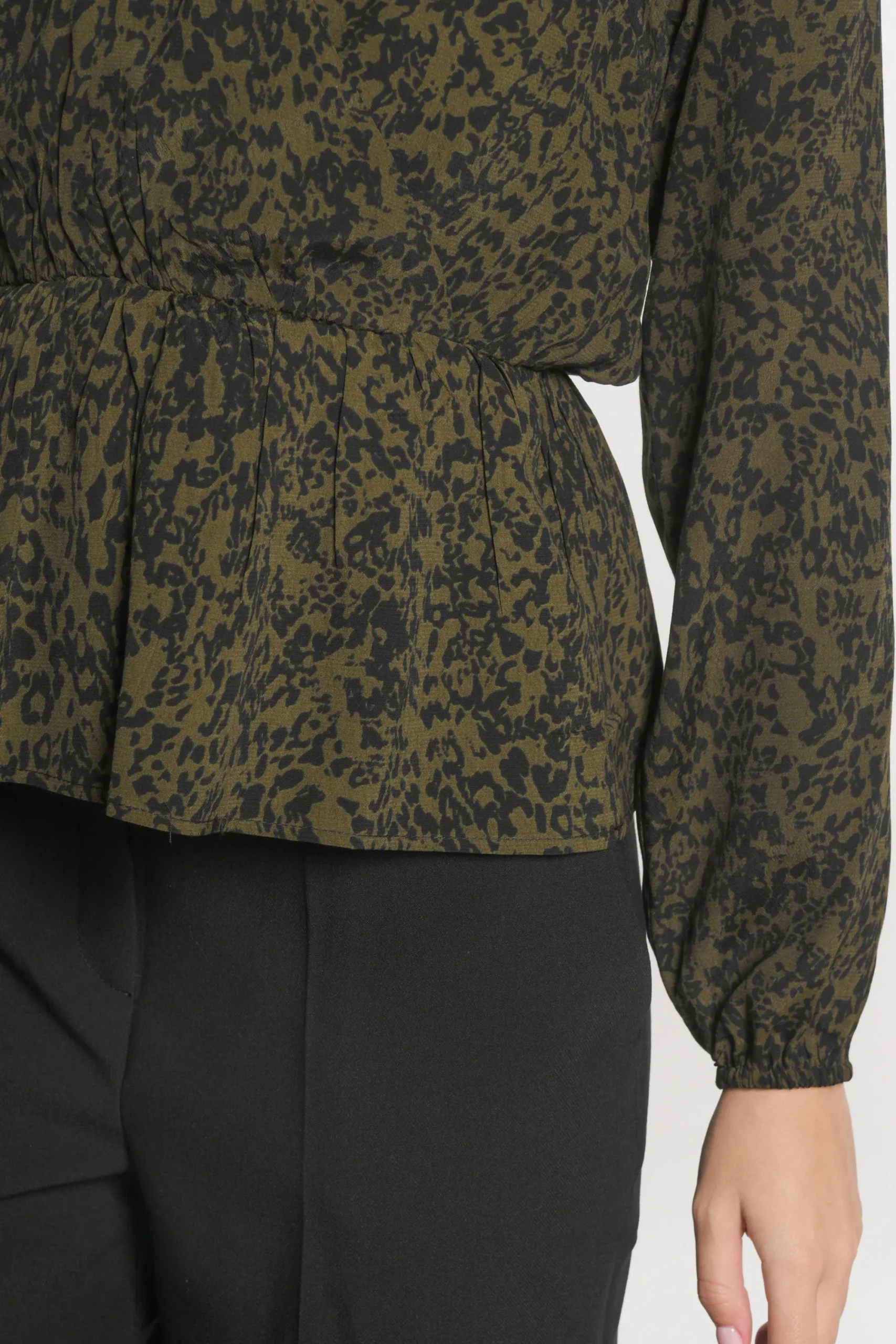 Blouse impriméeEn viscose, tissu fluide et très douxEncolure V effet faux cache-cœurCeinture élastiquéeManches long…