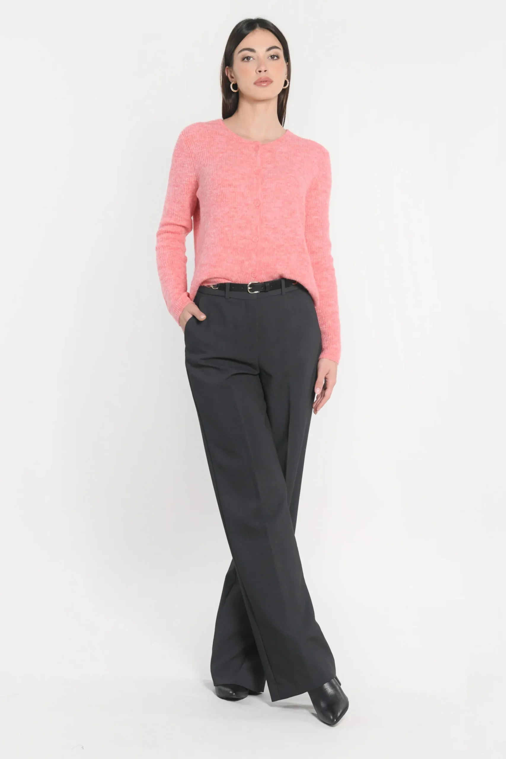 Gilet chiné manches longuesMaille fine toute douce contenant du mohair et de la laineTricotage en fines côtesEncolure …