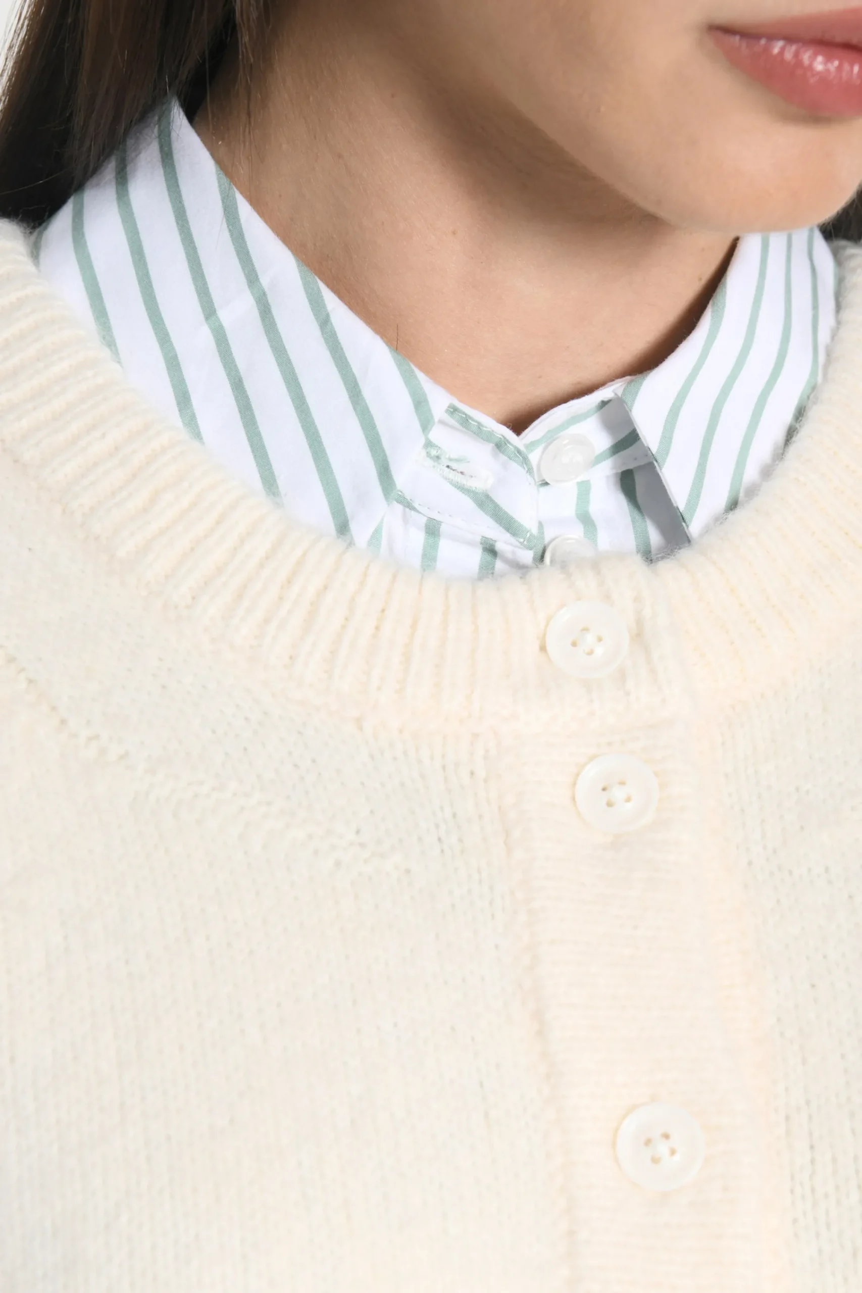Joli détail du tricotage fantaisie encadrant le col