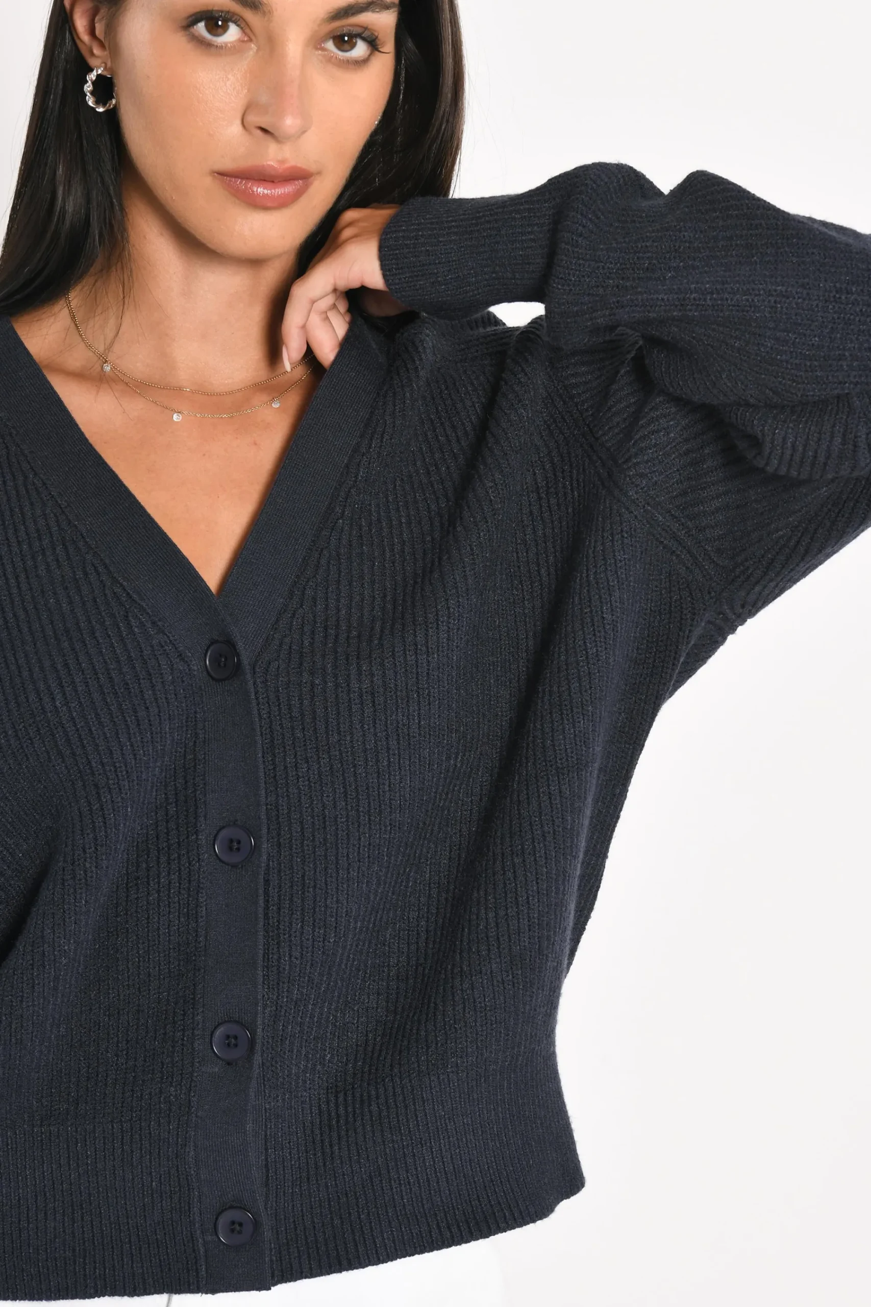 Gilet maille moelleuse tricotage fines côtesEncolure V bordée d’une bande ton sur ton full needleBoutonnage apparent m…