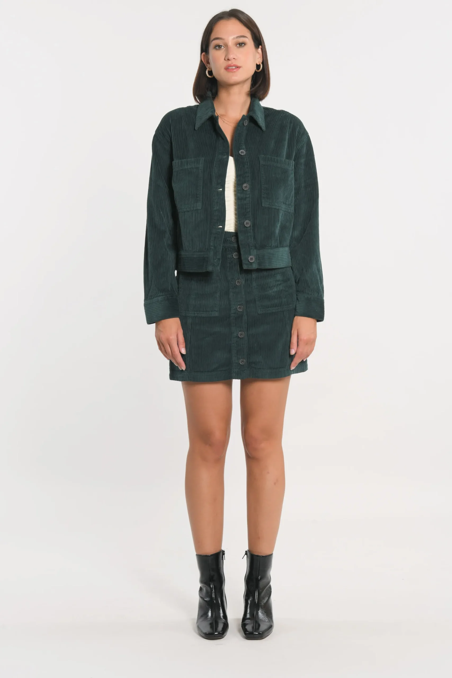 Jupe en velours 100% cotonFermeture tout le long devant boutons/boutonnièresTaille dotée de passants pour ceintures2 p…