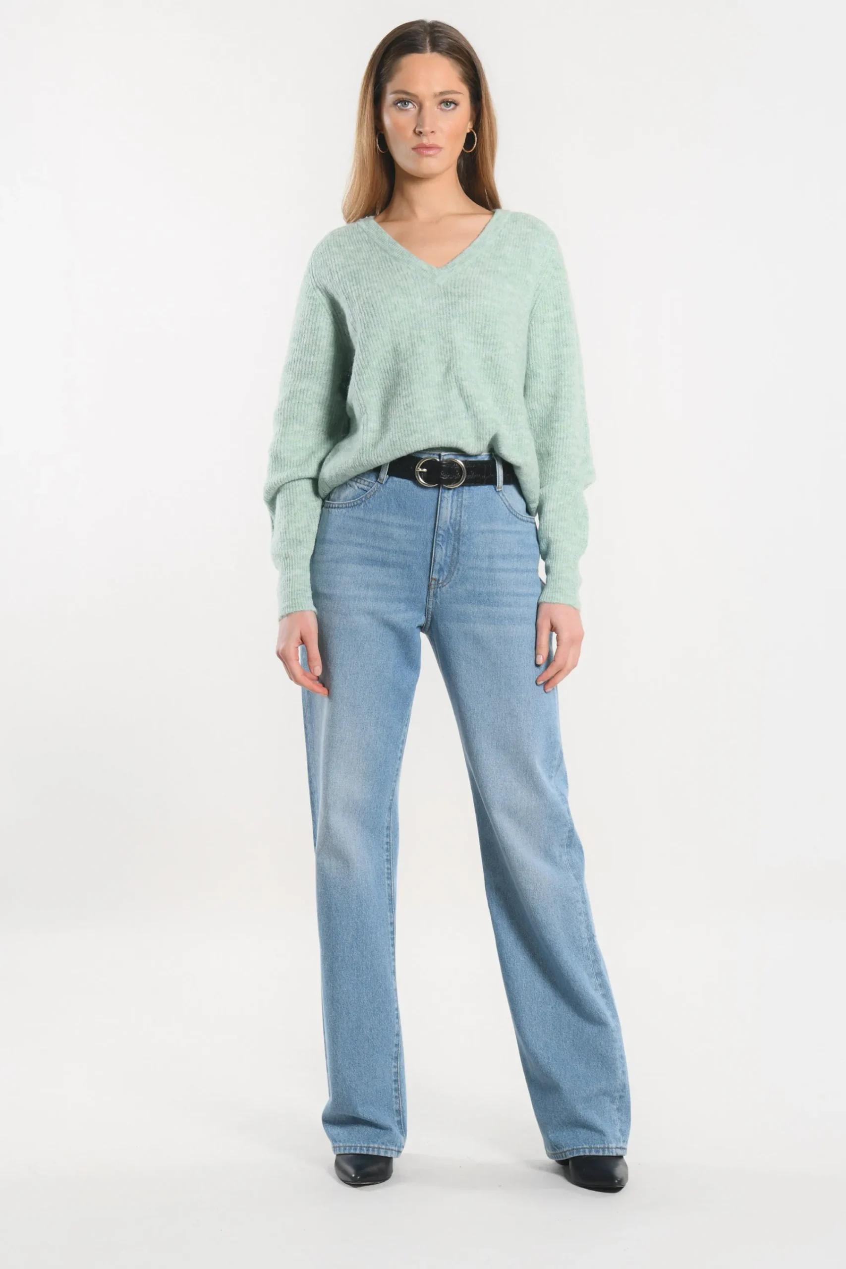 KOOKAÏ PULL COL V – DANNA – VERT AMANDE Vertamande Clearance