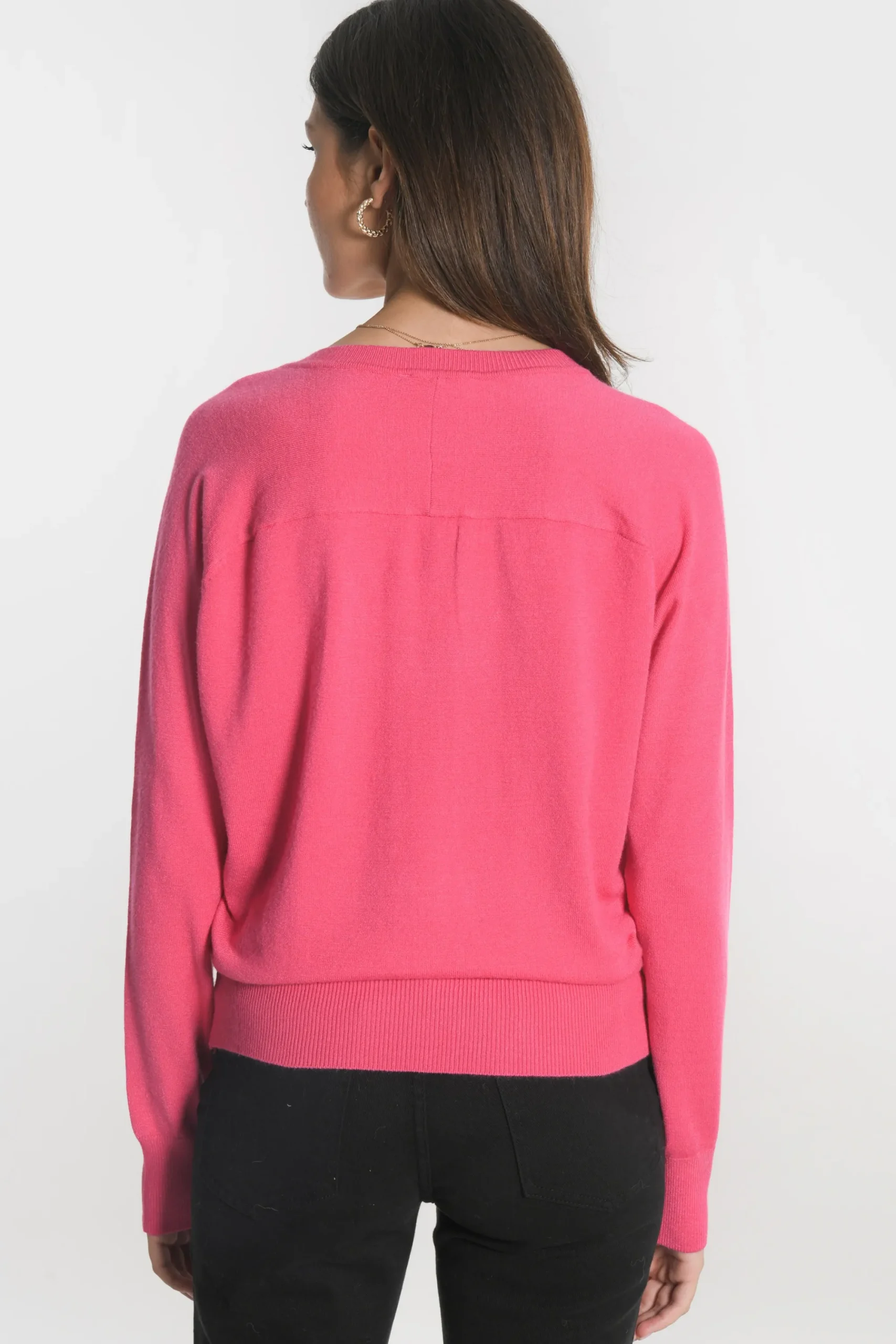 Pull uni col VMaille fine très douceProfond décolleté VEmmanchures raglan avec tricotage fantaisieBord côte sur le c…