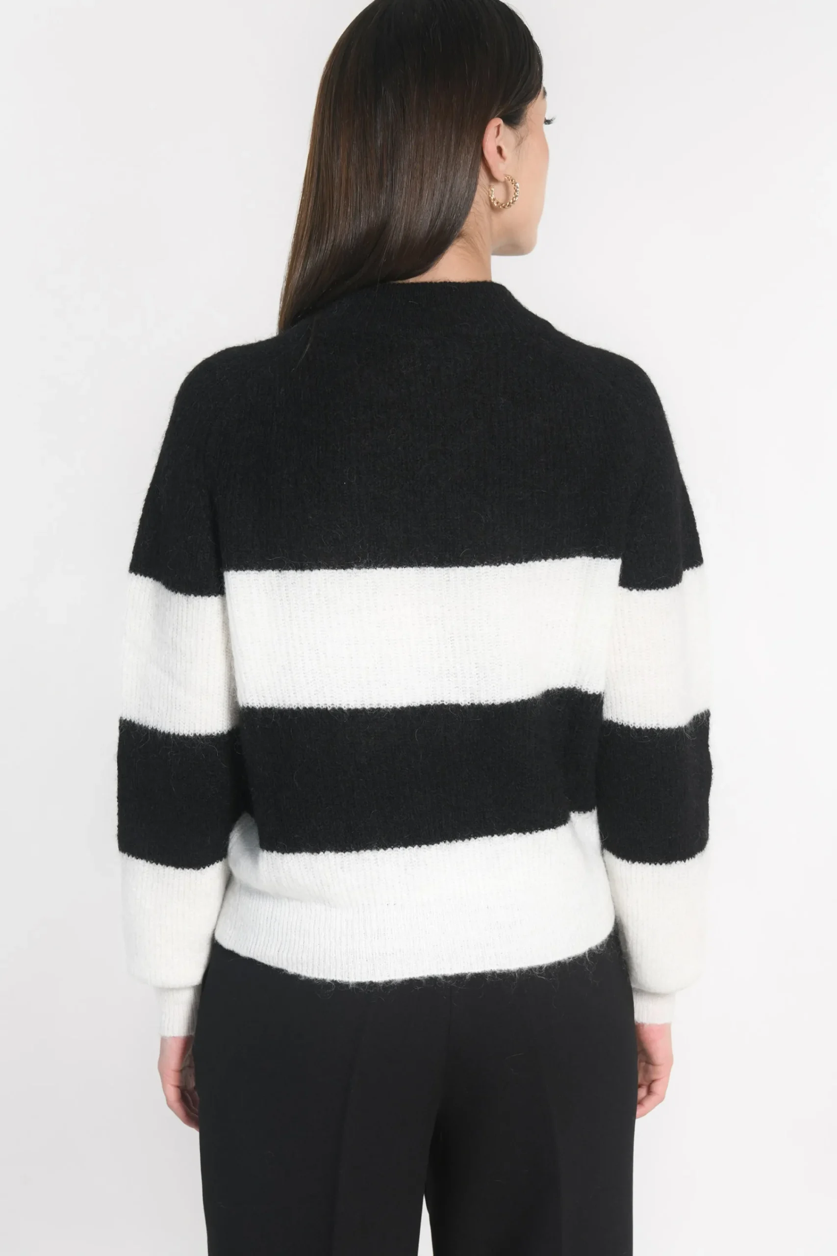 Pull col montantMaille très douce contenant du mohair et de la laineLarges rayures horizontales dans un coloris contras…