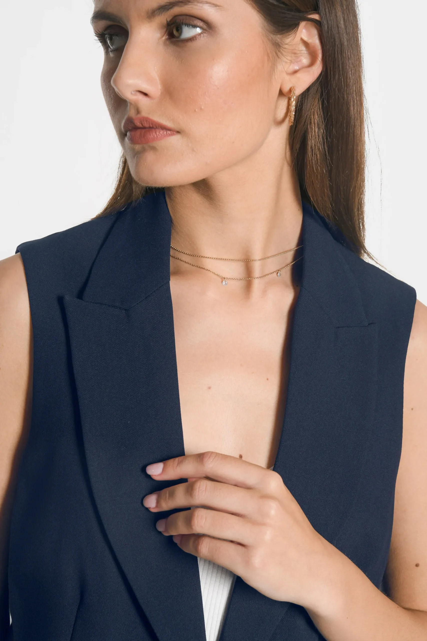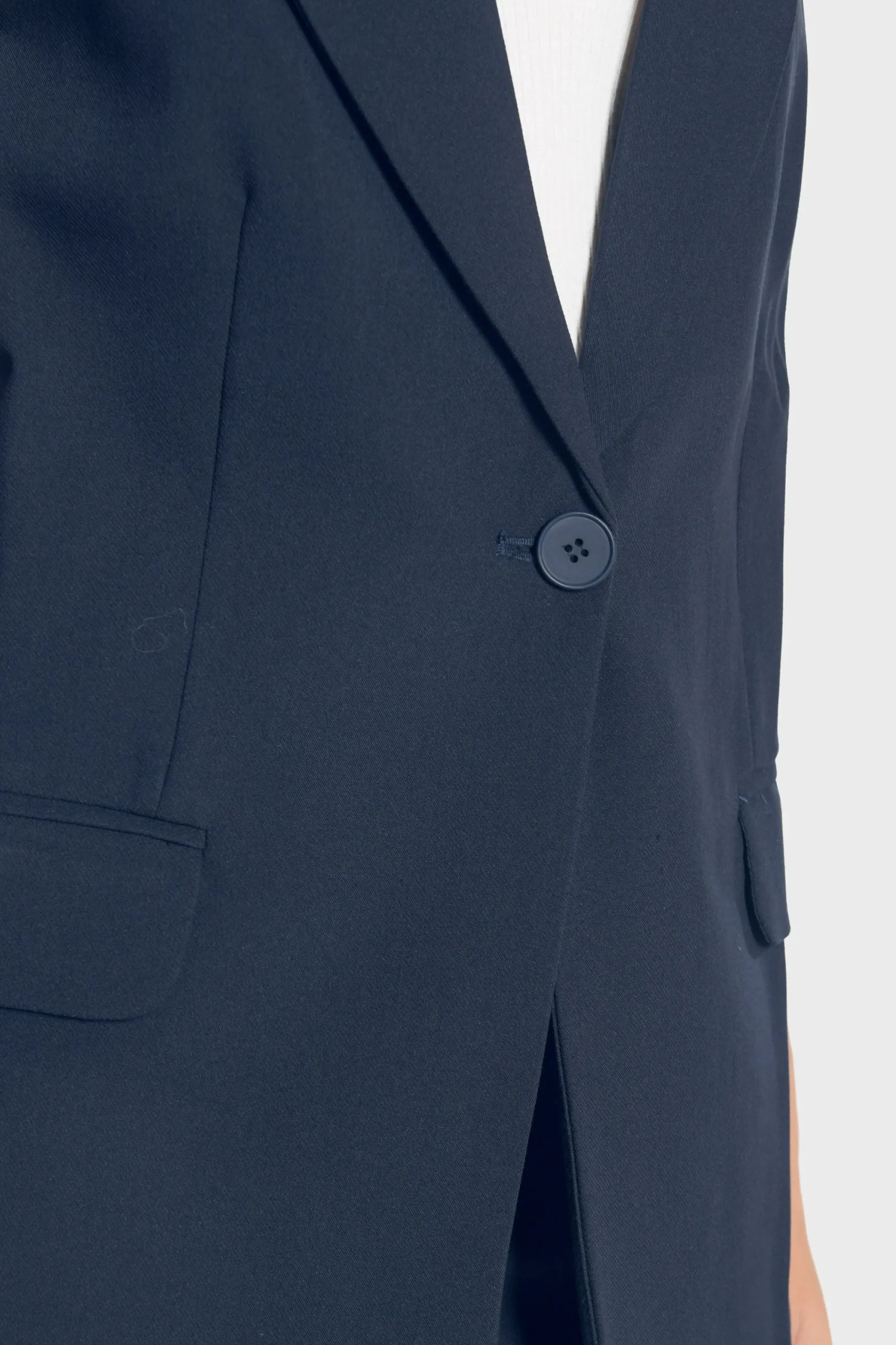 Moderne et structurée, voici la veste blazer sans manchesTissu uni avec touche de stretchCol tailleur, croisure fermée…