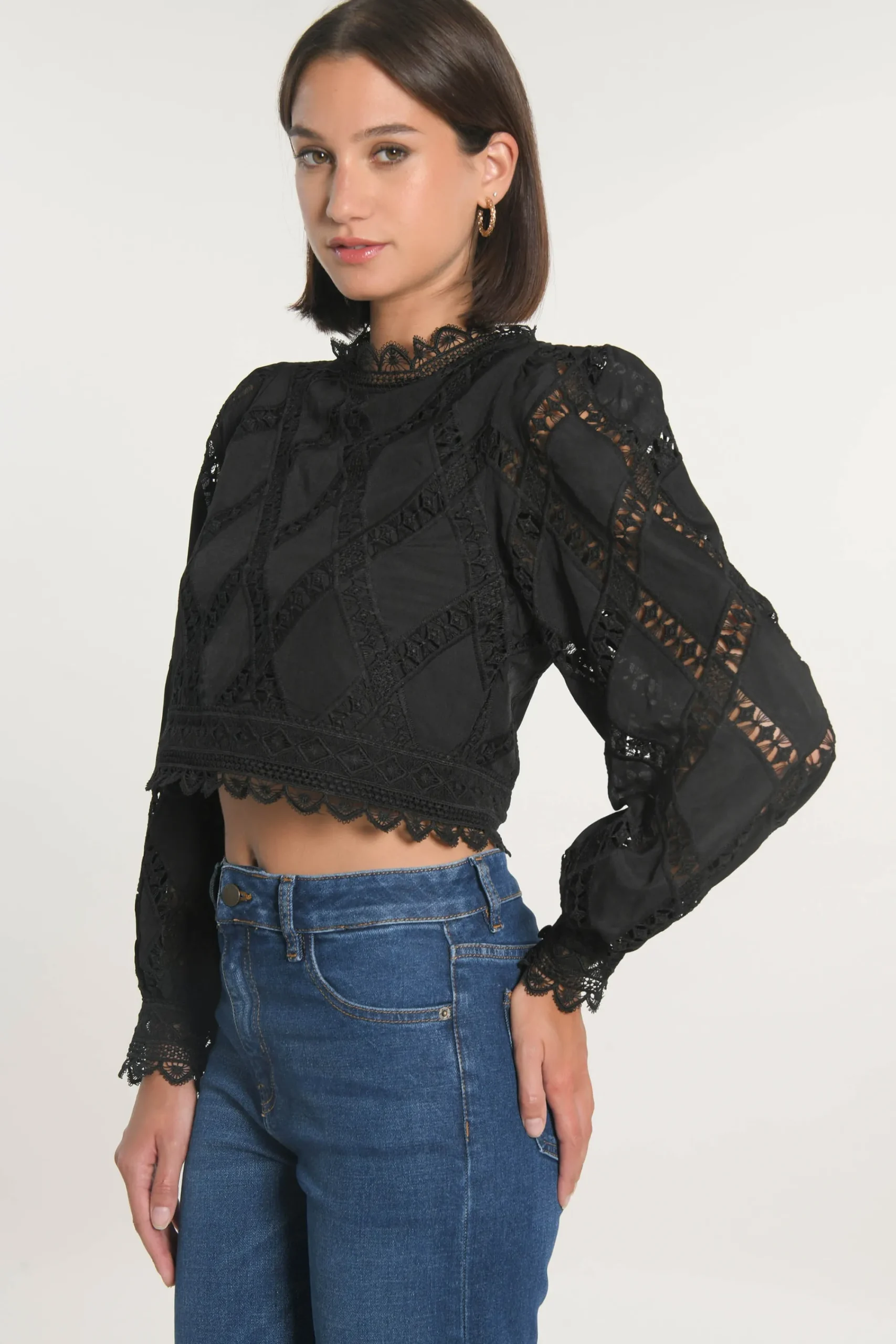 Blouse courte richement brodéeGalons de dentelle formant des losangesEncolure ronde près du couFermée au dos pas un z…