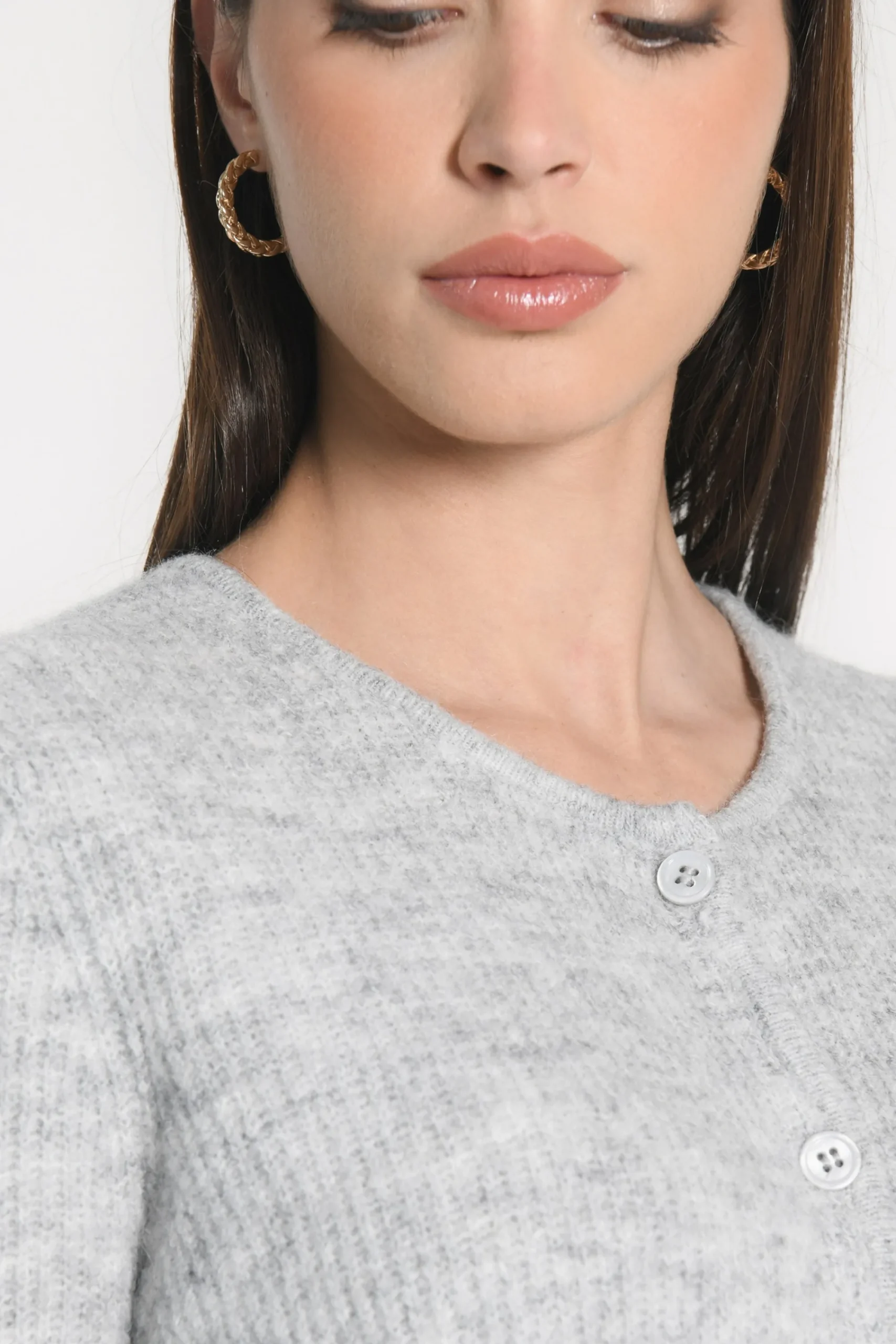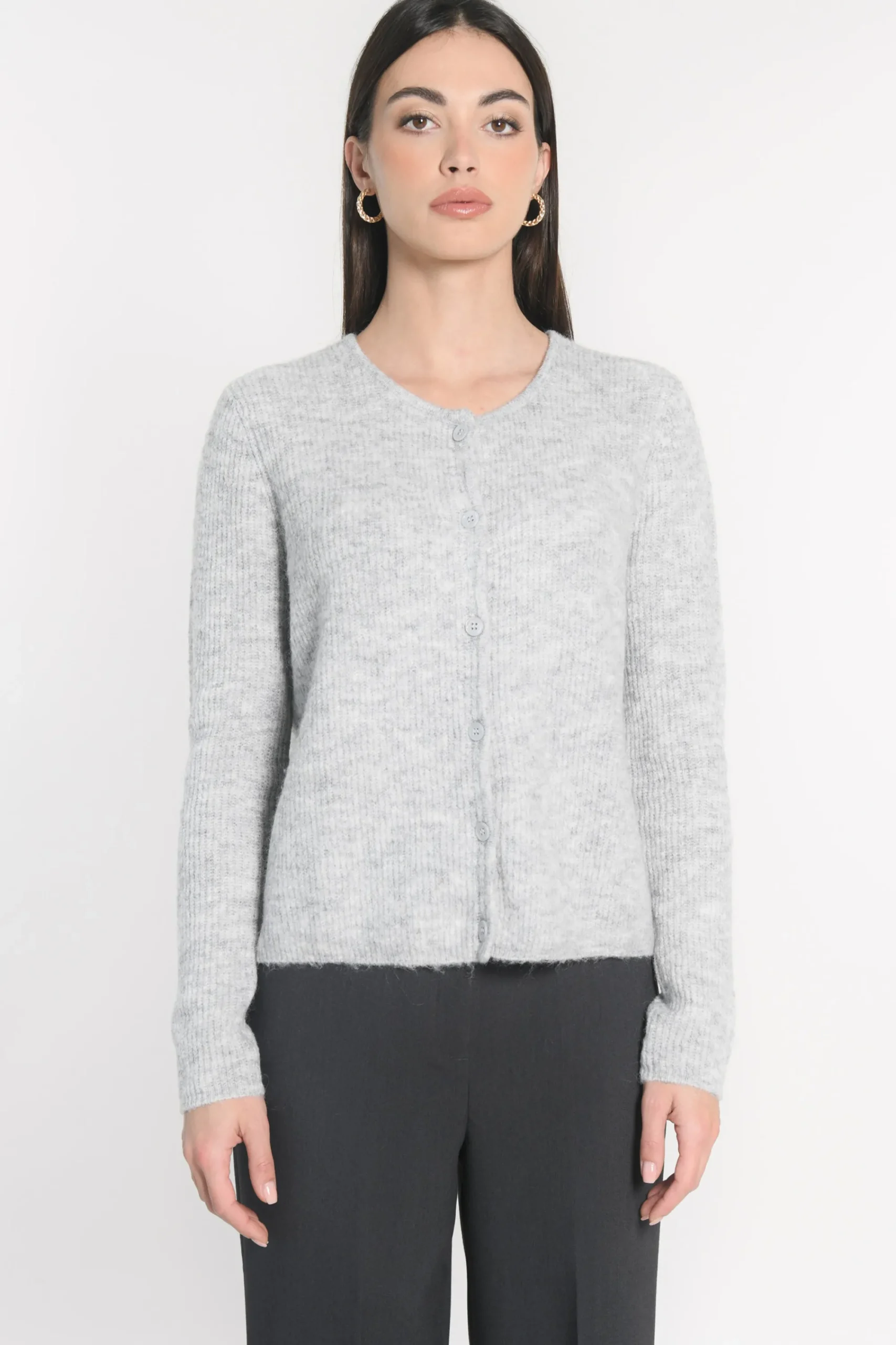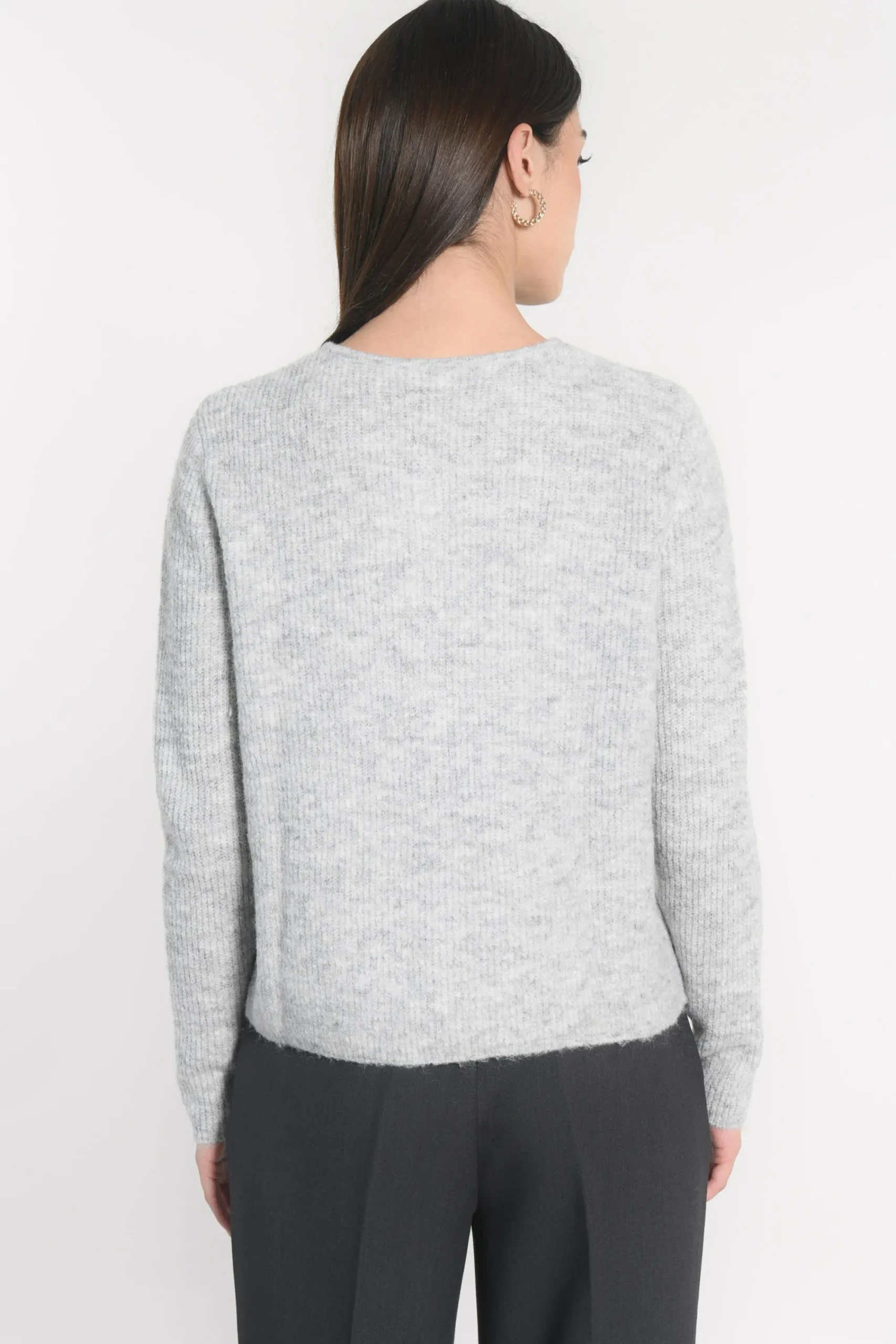 Gilet chiné manches longuesMaille fine toute douce contenant du mohair et de la laineTricotage en fines côtesEncolure …