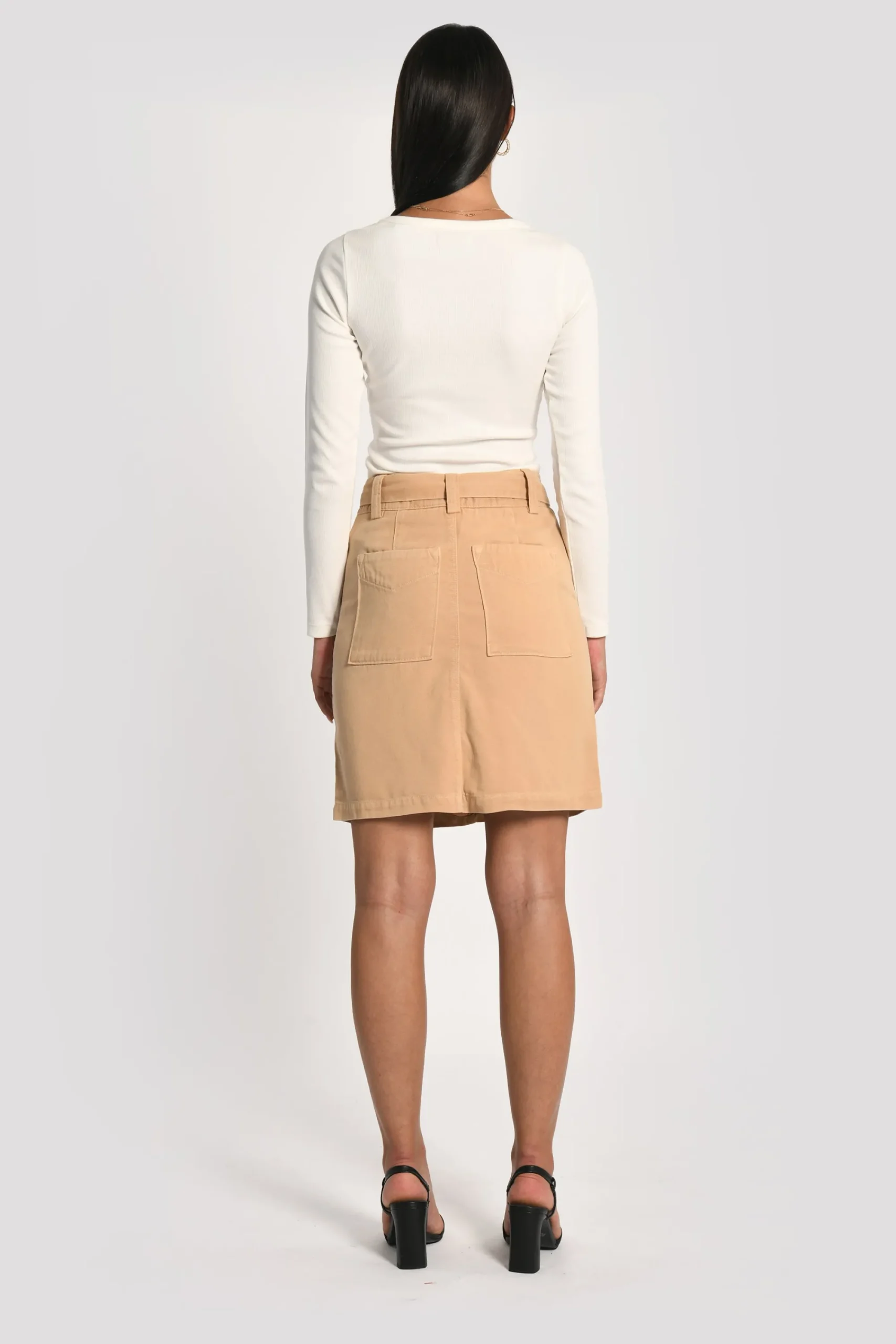 Jupe courte en lyocellTaille haute avec passants, ceinture assortie à nouerDevant, deux poches italiennes, au dos deux …