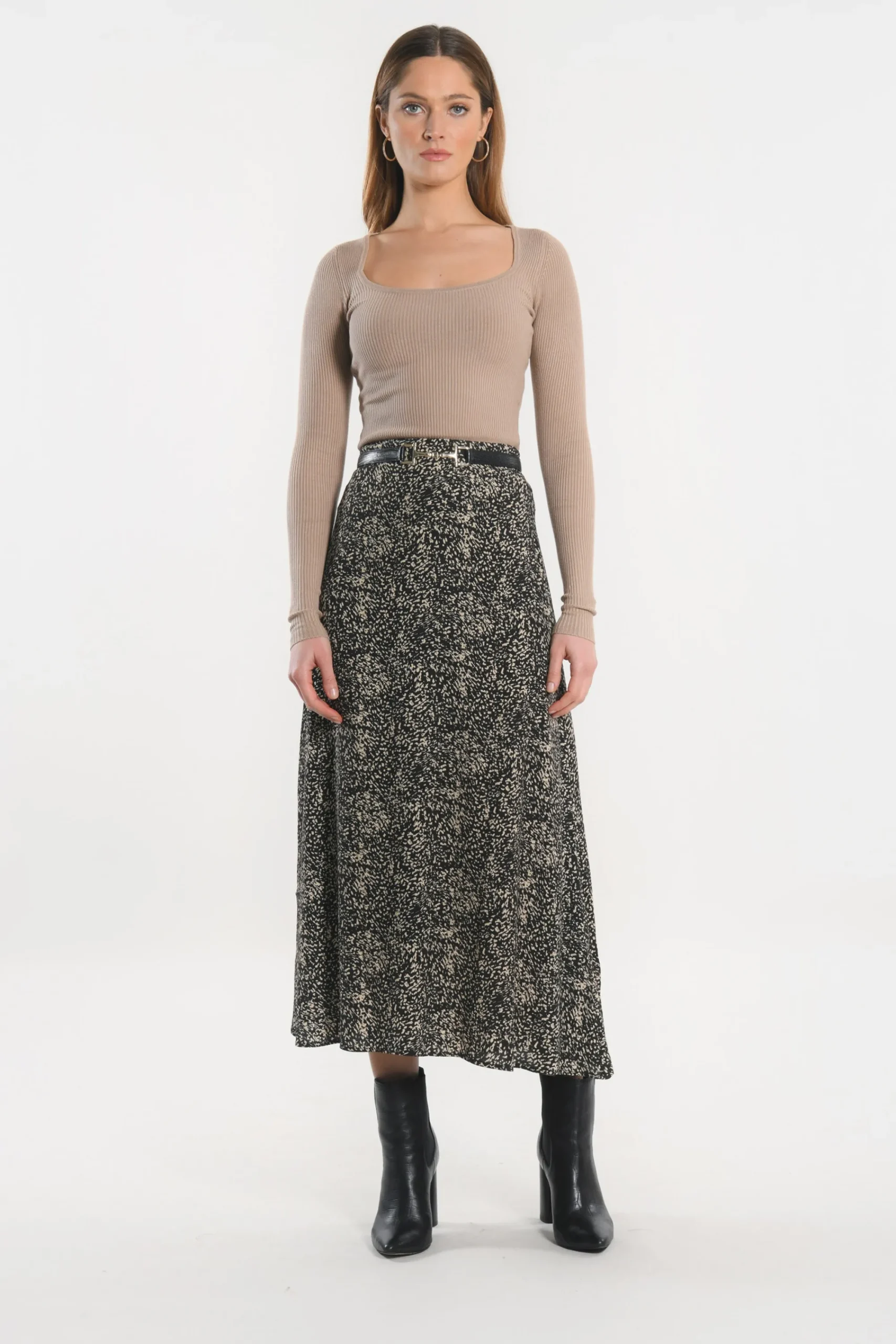 KOOKAÏ JUPE MIDI – BIANCA – Noir Hot