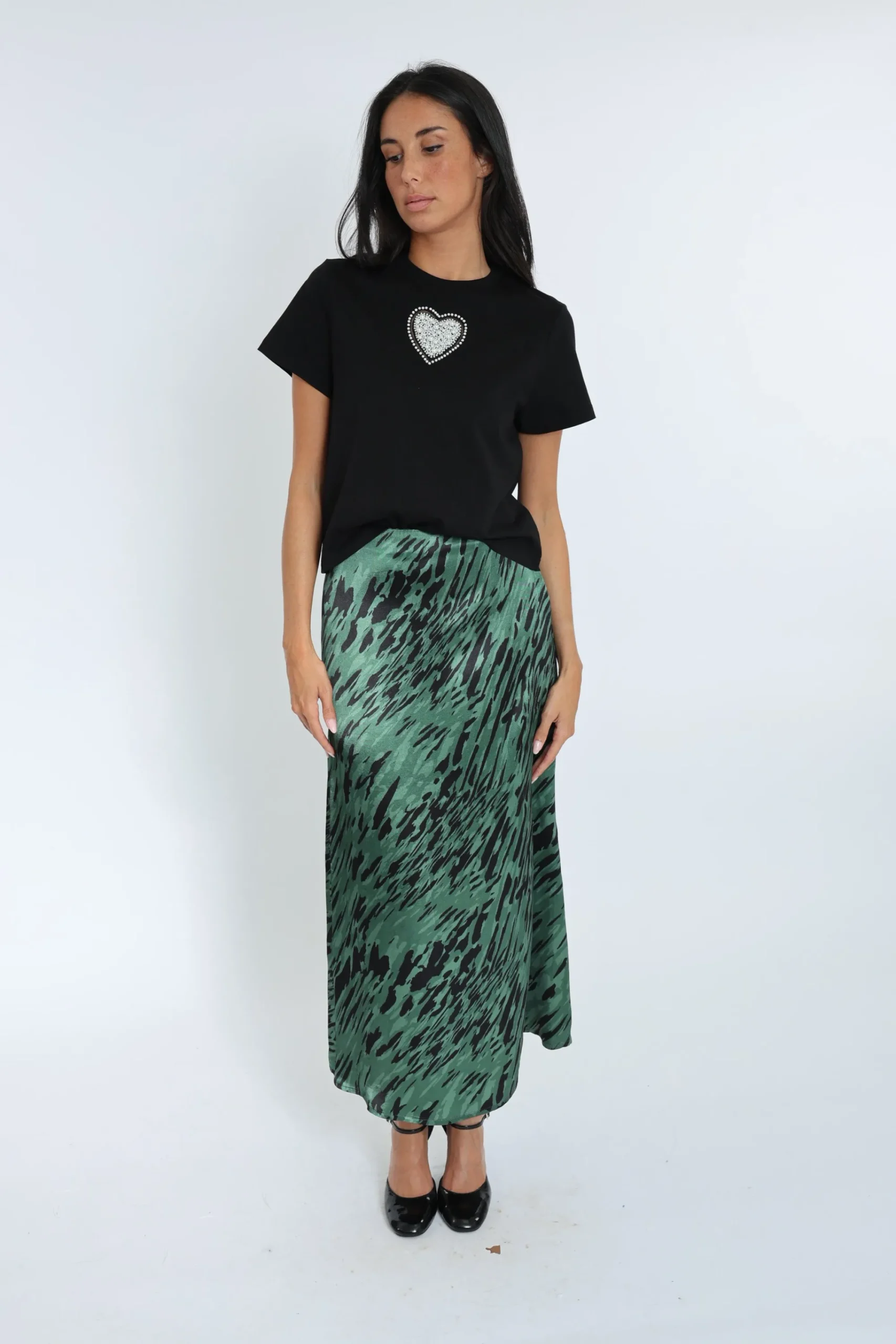 Jupe longue impriméeEn viscose, tissu fluide et doux, motif abstraitFermée par un zip invisibleBas évaséEntièrement…