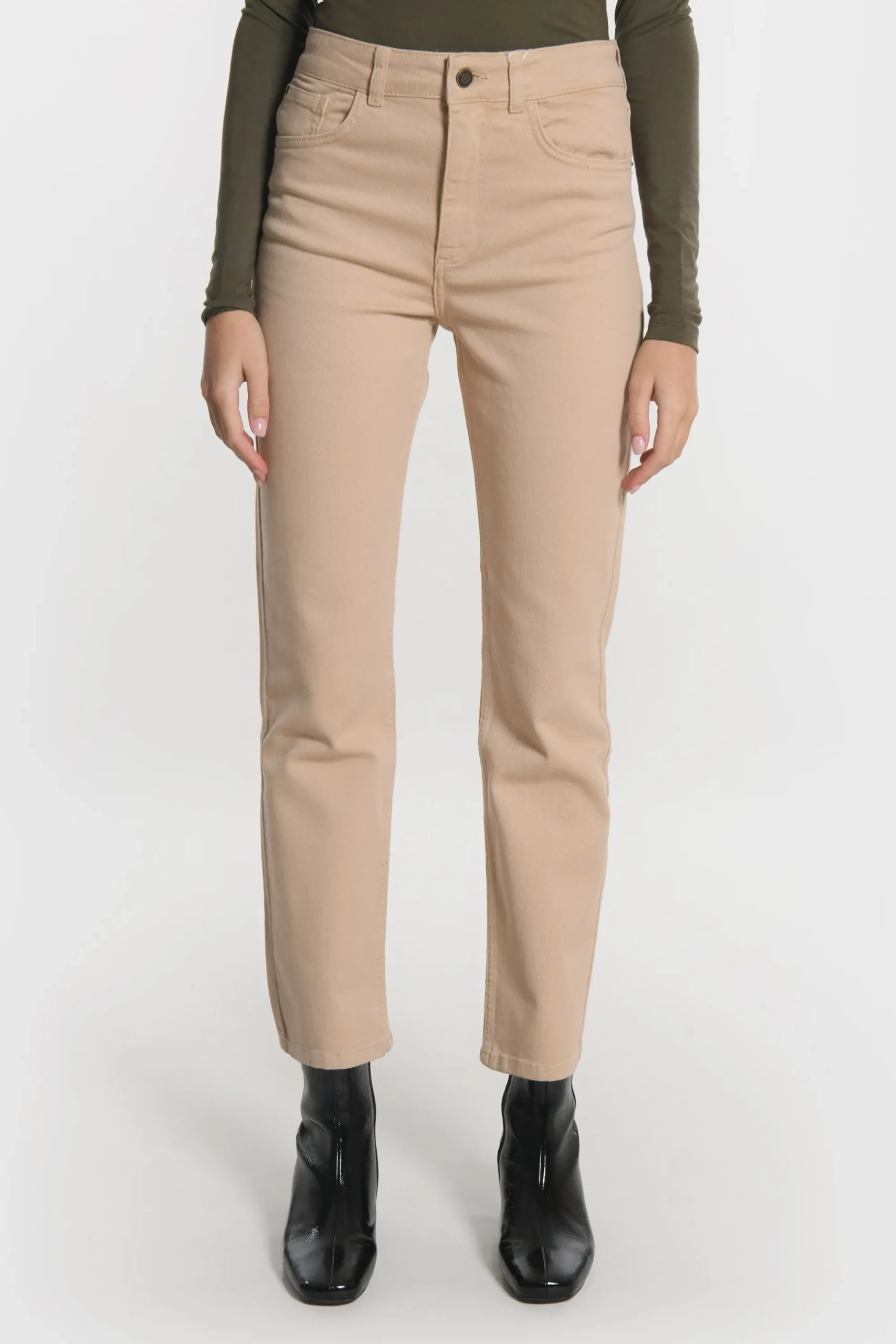 Jean uni cropped cinq poches coupe ajustée