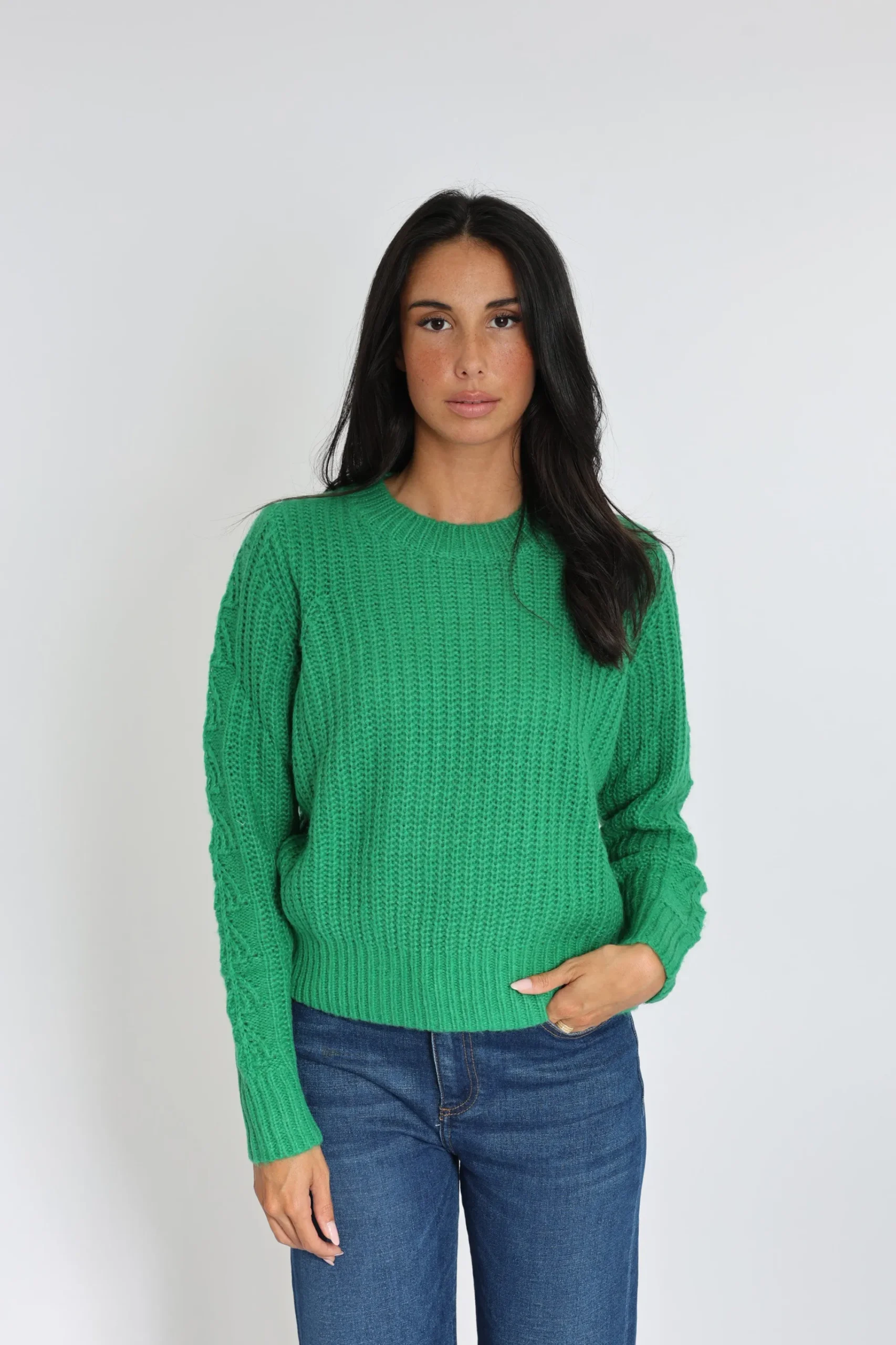 Joli détail du tricotage fantaisie le long des manches