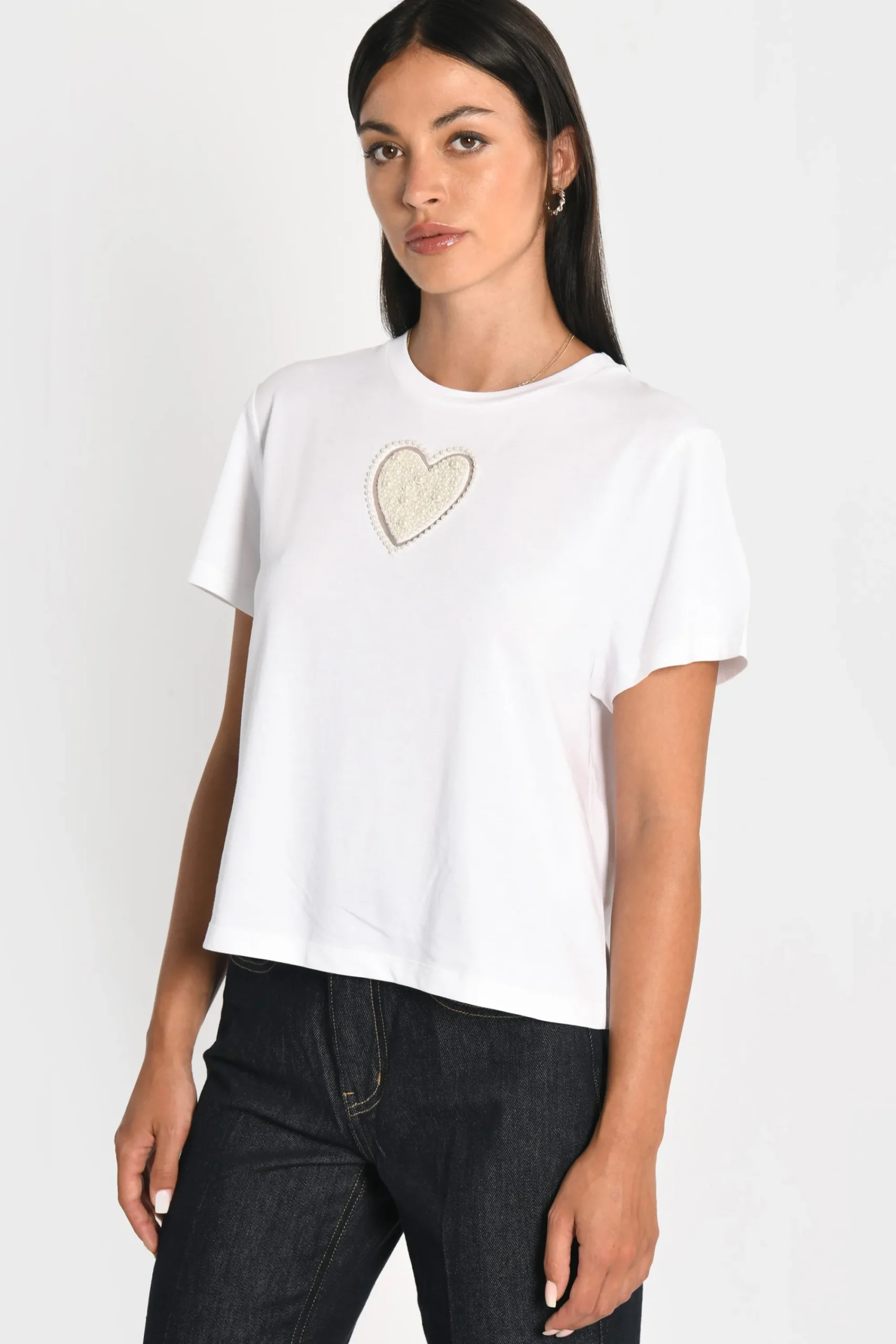 Le tee-shirt en coton avec un petit détail qui fait toute la différenceEncolure ronde, manches courtesCœur brodé en …