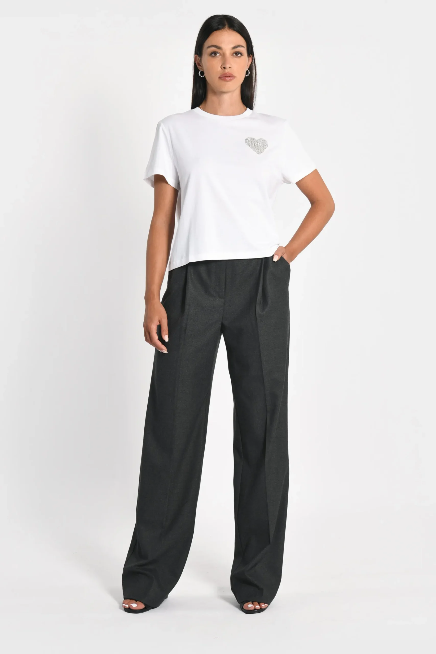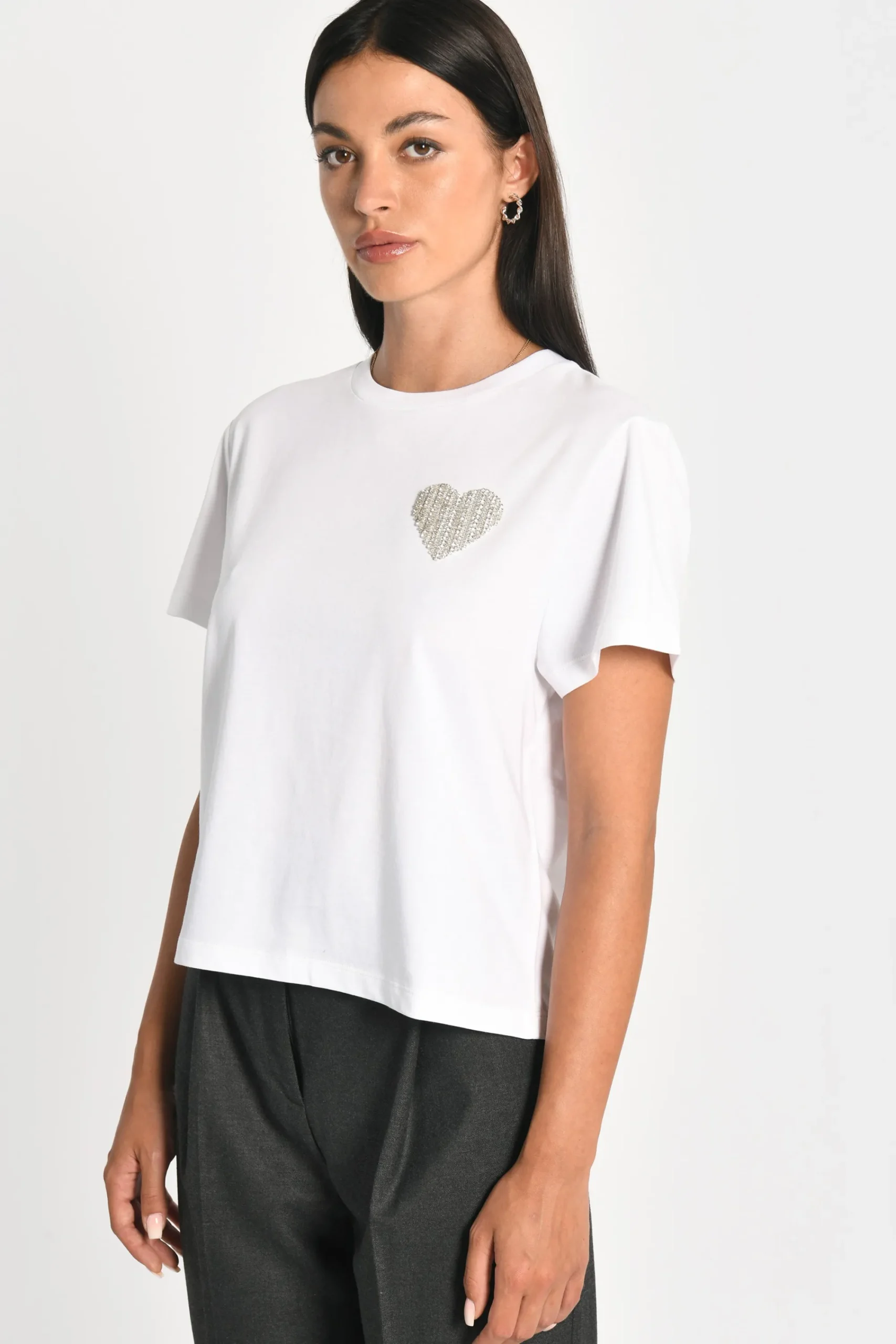 Le tee-shirt en coton pas si classique!Encolure ronde, manches courtesCœur entièrement brodé de strassCoupe droite et…