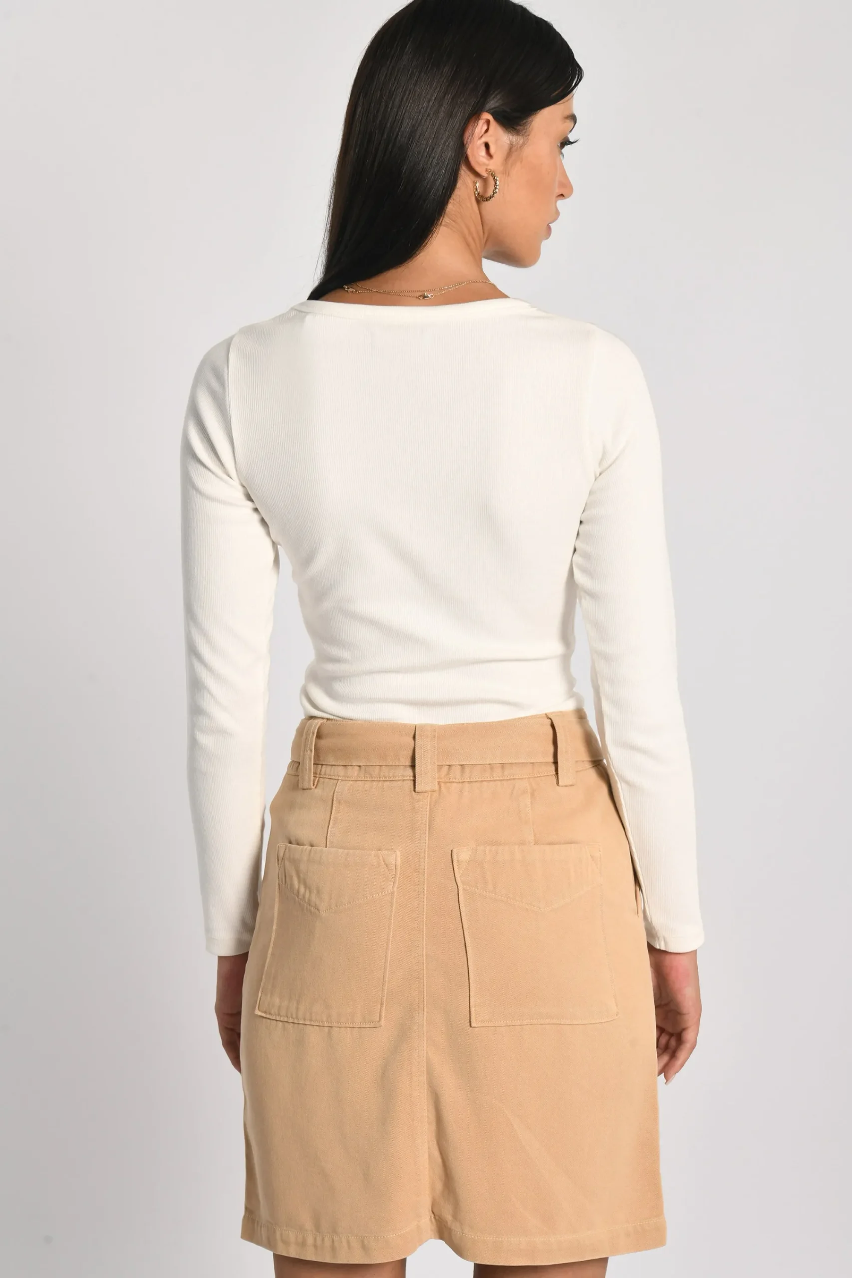 En coton modal avec une touche de stretch, travaillé en effet fines côtes