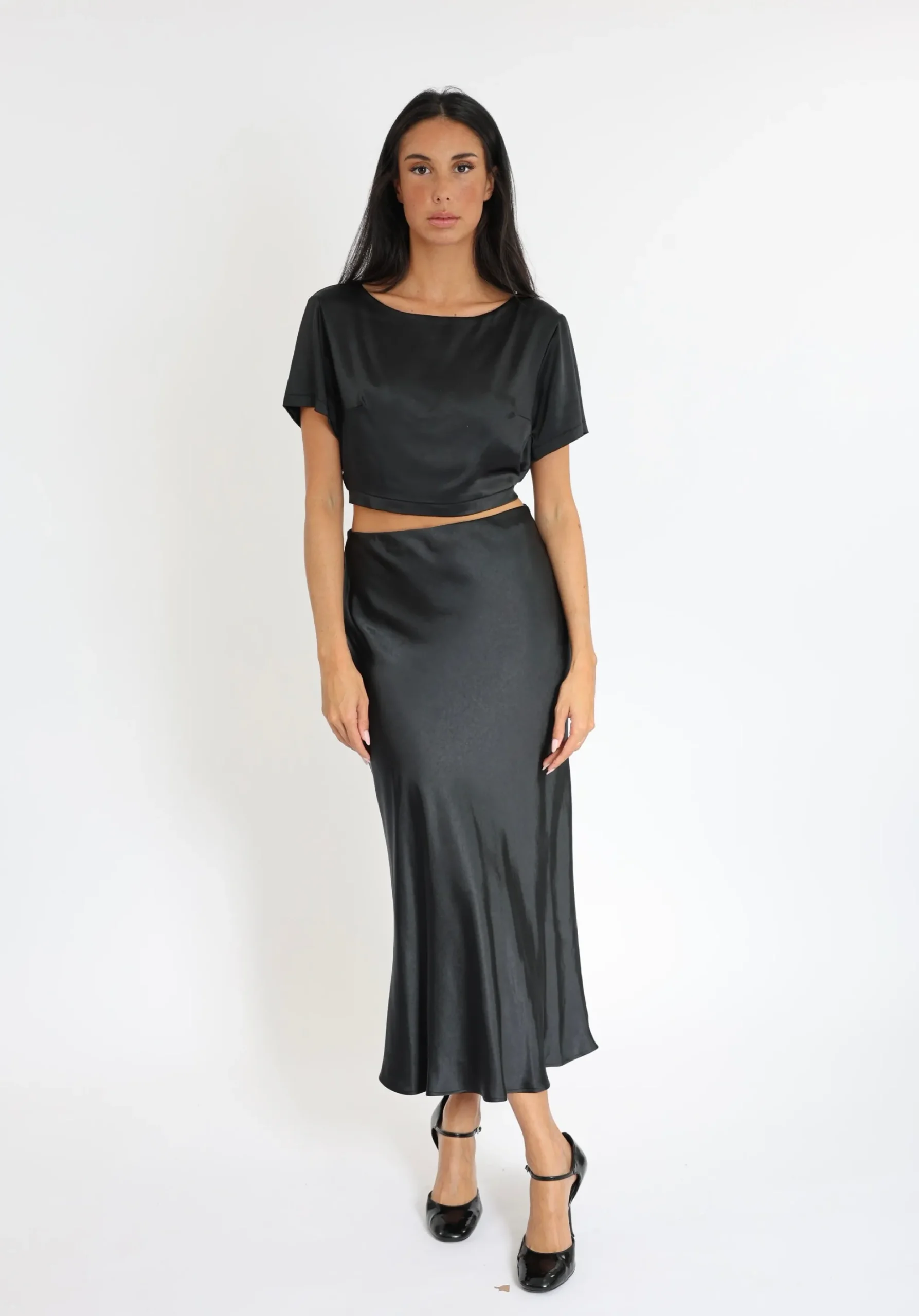 Sia, le petit crop top qui fait de l’effet!À porter seul ou avec la jupe assortieTissu satiné doux et fluideEncolure d…