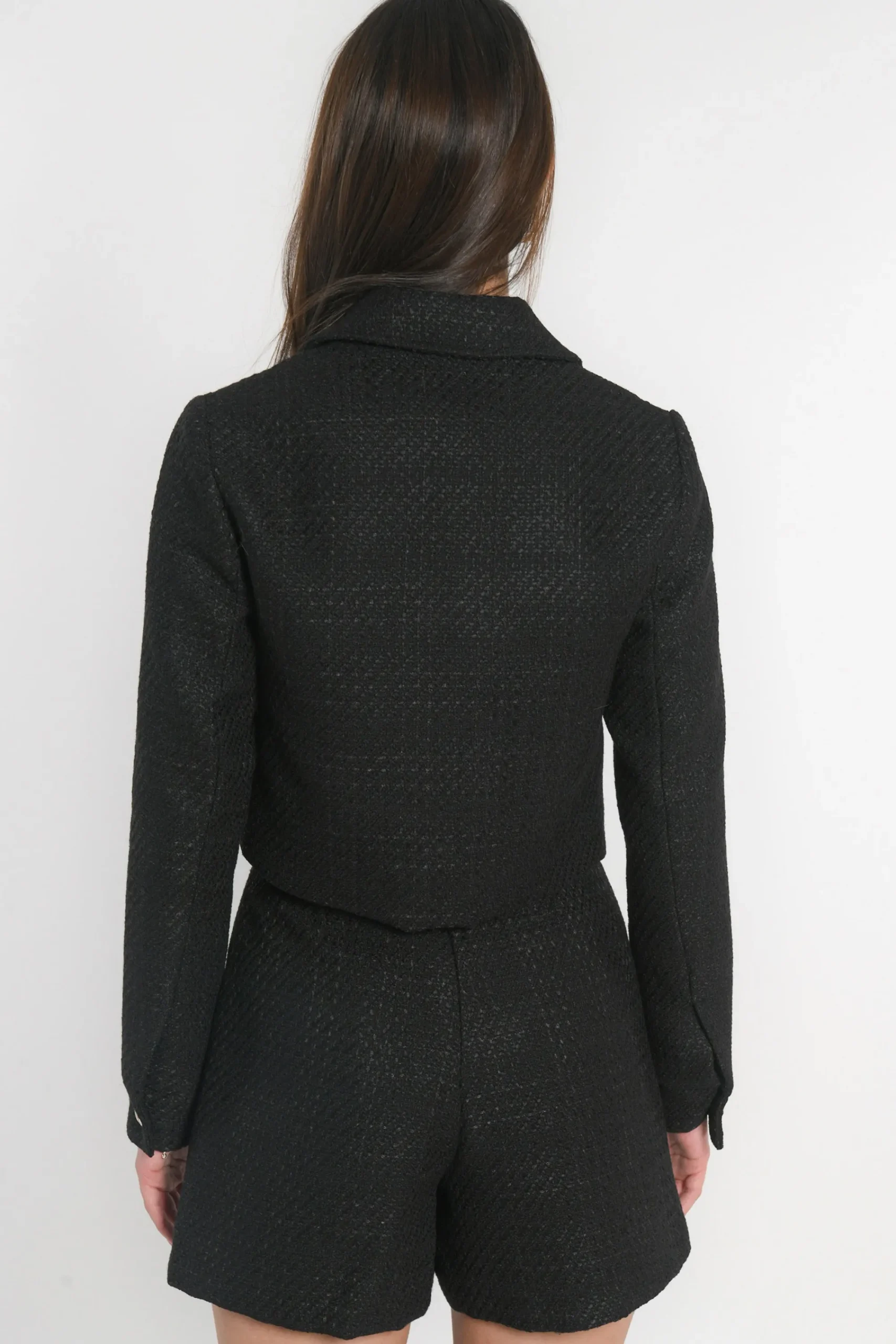 Veste courte Tissu texturé tissé effet petits carreaux ton sur tonA porter seule ou avec le short assortiPetit col, b…